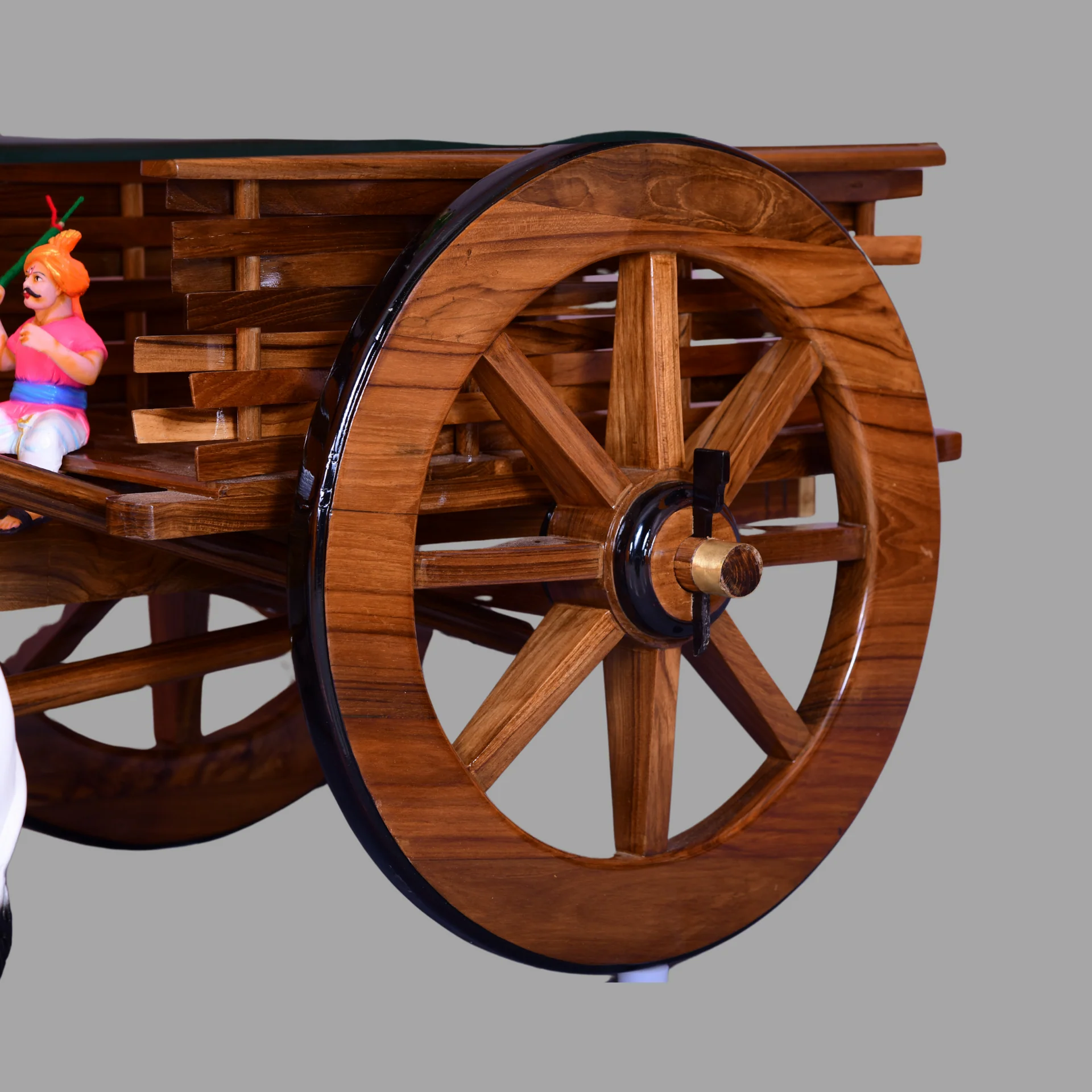 - Premium Materials: The bullock cart is constructed from high-quality teak wood known for its durability and beautiful, rich grain. Accompanied by fiber bulls and a farmer figure, each component is crafted to ensure longevity and visual appeal.